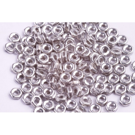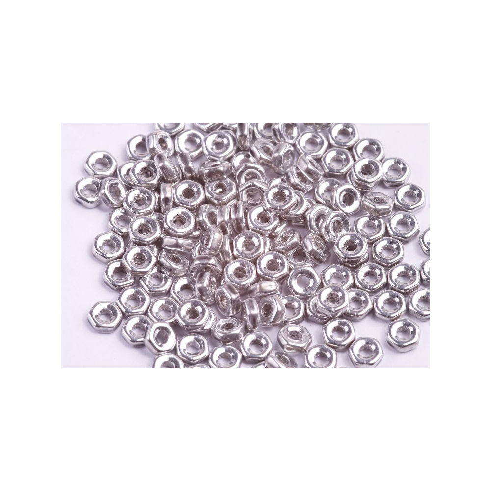Stříbrné odlesky připomínající chladnou krásu ušlechtilého kovu se zrcadlí na každé hraně těchto unikátních prvků, které do světa šperkařství vnášejí industriální eleganci. Tyto české skleněné korálky ve tvaru šestiúhelníkové matky, mezinárodně známé pod názvem Hex Nut Beads 2 x 5 mm, pocházejí z rodinné dílny Rutkovský, kde se snoubí tradiční české sklářství s moderním designem. Každý kus je výsledkem precizní ruční výroby, což zaručuje, že vaše autorské šperky získají punc originality, kvality a jedinečného charakteru.
