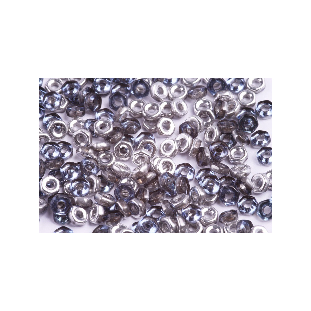 Průmyslově inspirované Hex Nut Beads 2 x 5 mm z dílny rodinné firmy Rutkovský představují unikátní spojení geometrické přesnosti a tradičního sklářského řemesla. Tyto české skleněné korálky, známé také pod názvem Aureliox, vynikají precizně mačkaným tvarem šestihranné matičky, který dodává šperkům moderní, technický vzhled. Díky ruční výrobě v České republice je zajištěna vysoká kvalita skla a stálost povrchové úpravy v odstínu Backlit Periwinkle, který na světle vytváří hluboké metalické odlesky.