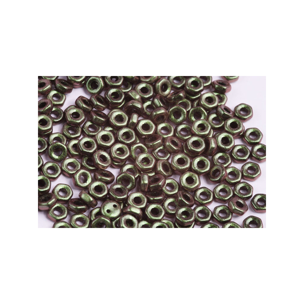 Metallic Suede Chameleon Green povrchová úprava dodává těmto drobným komponentům fascinující hloubku a měňavé odlesky, které se pohybují na pomezí zelené a bronzové barvy. Oproti klasickému lesklému rokajlu nabízejí tyto Hex Nut Beads 2 x 5 mm unikátní matný, semišový vzhled, který neodráží světlo přímo, ale spíše ho jemně pohlcuje a transformuje. Jsou ideální volbou pro autory, kteří hledají industriální nádech v kombinaci s tradiční řemeslnou kvalitou, kterou zaručuje rodinná firma Rutkovský.