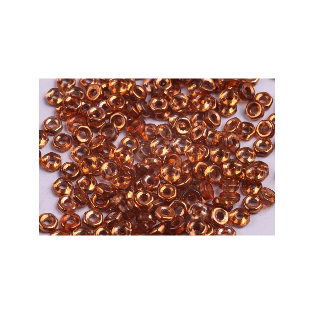 Medově zlatý odstín a precizní geometrický tvar definují tyto skleněné korálky Aureliox, které pod mezinárodním názvem Hex Nut Beads vyrábí rodinná firma Rutkovský. Tato tradiční česká ruční výroba navazuje na staletí sklářského umění v Jizerských horách, přičemž každá skleněná matička nese punc originality díky lisování z kvalitního skla. Na rozdíl od běžného rokajlu nabízejí tyto české korálky o rozměru 2 x 5 mm specifický industriální vzhled s jemným lesklým povrchem a měděnými odlesky, které vyniknou v každém detailu.