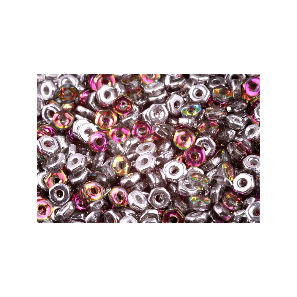 Hex Nut Beads, v českém prostředí známé pod obchodním názvem Aureliox, představují unikátní geometrický tvar připomínající drobné matičky o rozměru 2 x 5 mm. Jejich pravidelná šestihranná forma je ideální pro tvorbu geometrických vzorů a industriálně laděných doplňků.