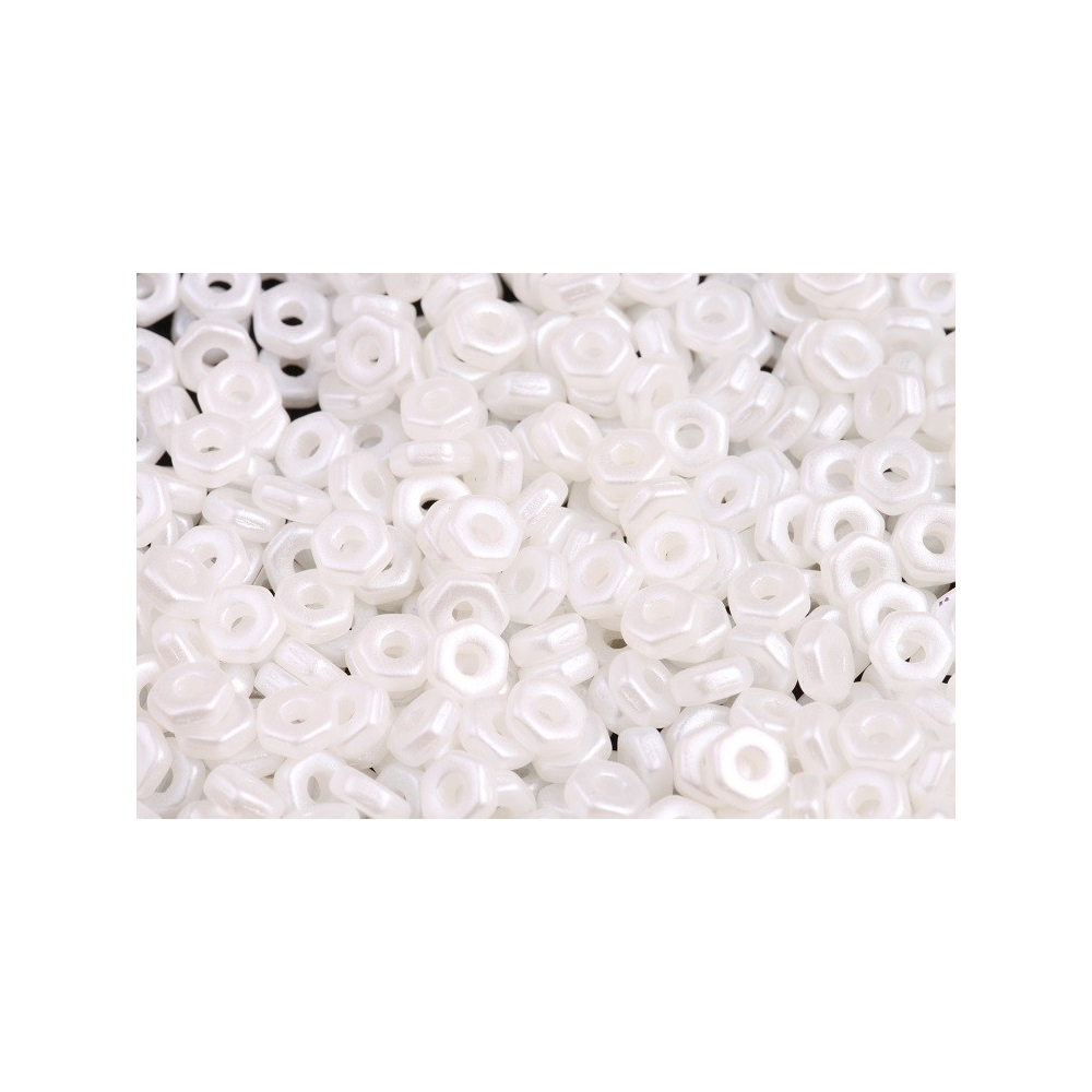 Matný a jemně perleťový povrch v odstínu Pastel Snow White s kódem barvy 02010/25001 dodává šperkům čistý a minimalistický vzhled. Díky svému specifickému tvaru šestihranné matice se korálky skvěle doplňují s drobným rokajlem Preciosa velikosti 10/0 nebo 11/0. Jsou ideální volbou pro techniky beadweaving (šitý šperk) nebo pro vytváření prostorových geometrických struktur v moderních náramcích.