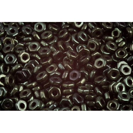 Hex Nut Beads neboli Aureliox o velikosti 2 x 5 mm jsou díky svému širokému průtahu a plochému tvaru mimořádně univerzální. Tento tvar umožňuje vytvářet pevné, architektonicky vyhlížející konstrukce i jemné detaily v náročných designech, kde je kladen důraz na symetrii.
