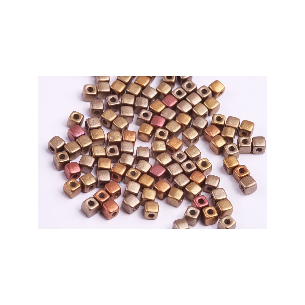 Korálky kostka CUBIX Velikost 4 x 4 mm Velikost průtahu: 1,8 mm Balení: 5 g Barva: CRYSTAL BRONZE...