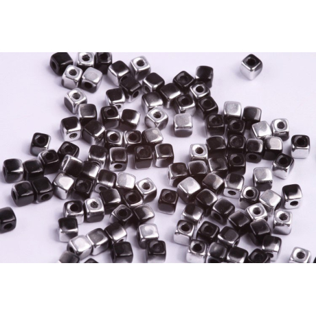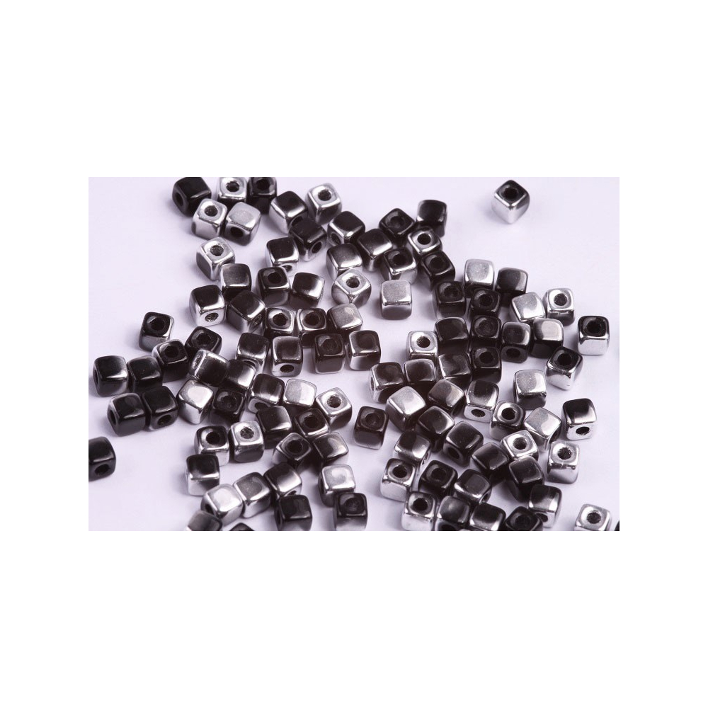 Korálky kostka CUBIX Velikost 4 x 4 mm Velikost průtahu: 1,8 mm Balení: 5 g Barva: JET HEMATITE...