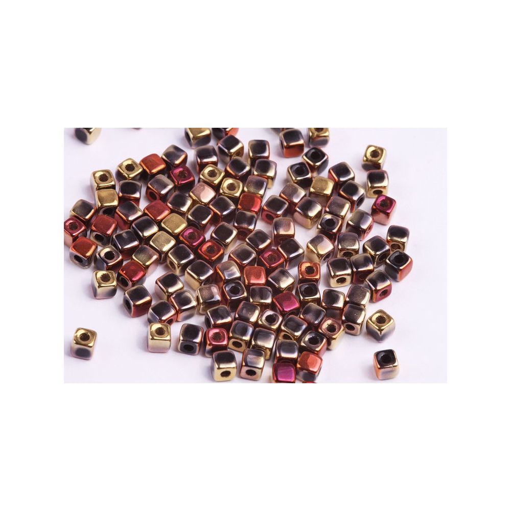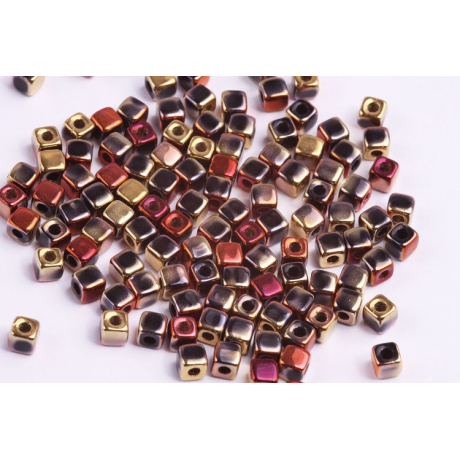 Korálky kostka CUBIX Velikost 4 x 4 mm Velikost průtahu: 1,8 mm Balení: 5 g Barva: JET CAPRI GOLD...