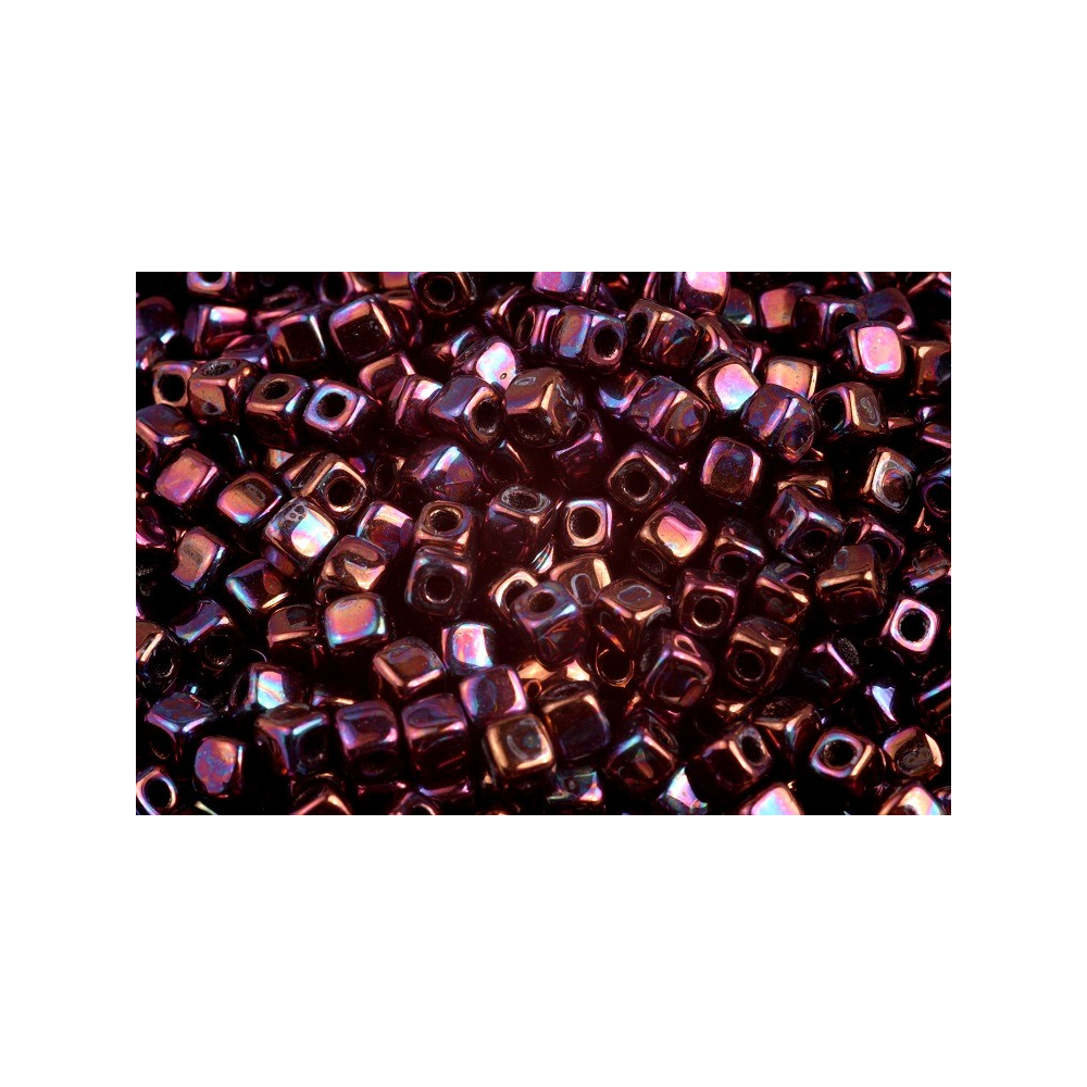 Korálky kostka CUBIX Velikost 4 x 4 mm Velikost průtahu: 1,8 mm Balení: 5 g Barva: CRYSTAL RED...