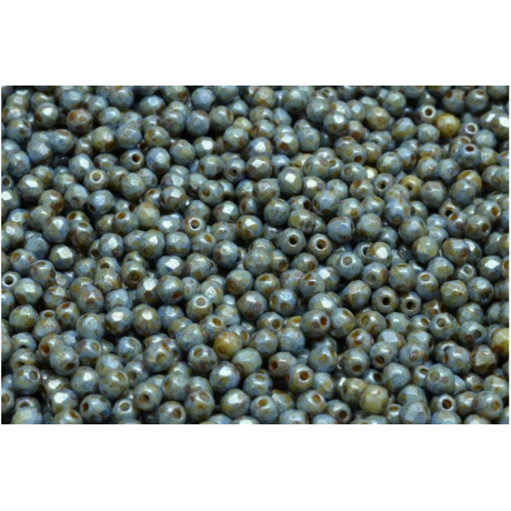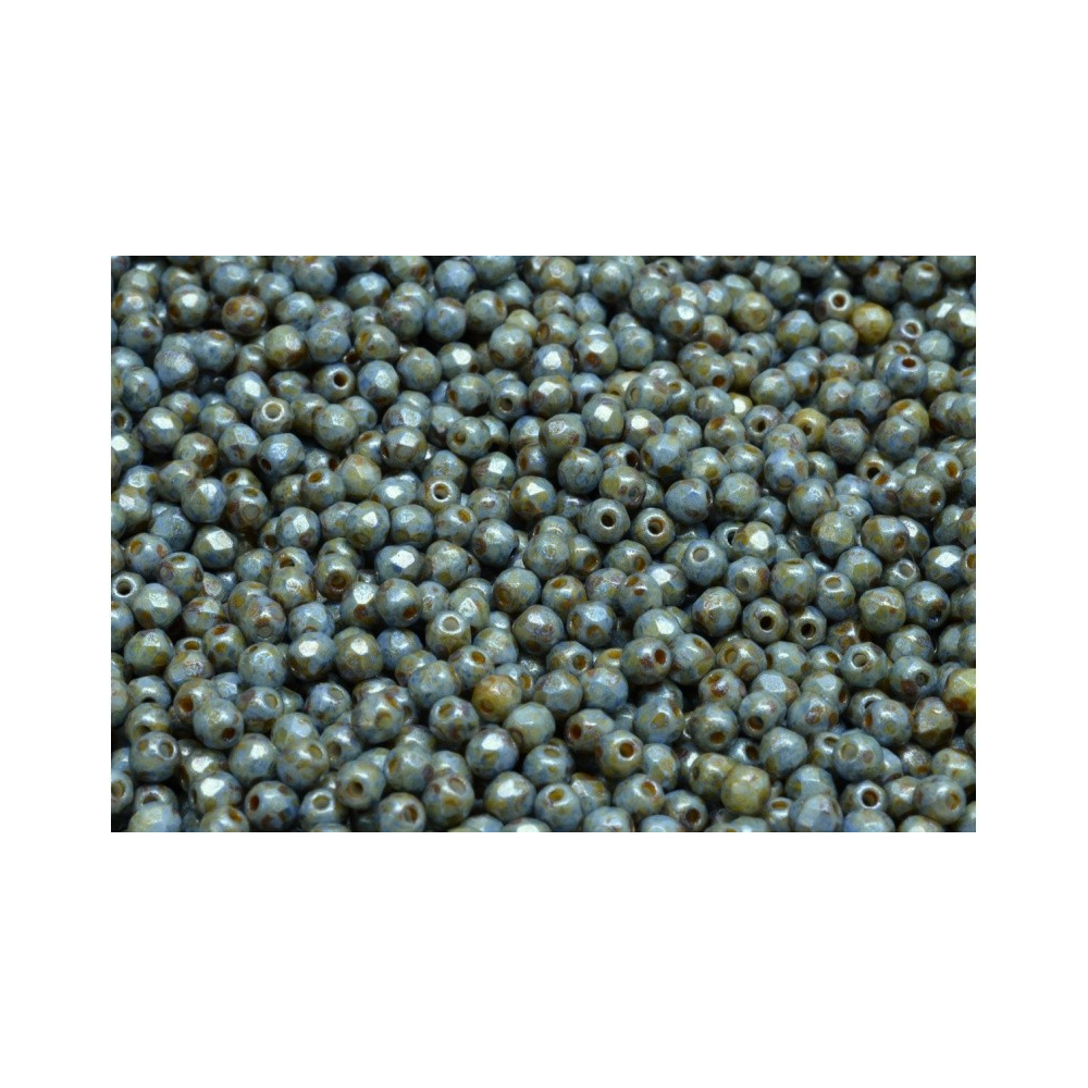 Korálky Ohňovky - broušené korálky 3 mm OPAQUE BLUE/GREEN SPOTTED 02010/65325