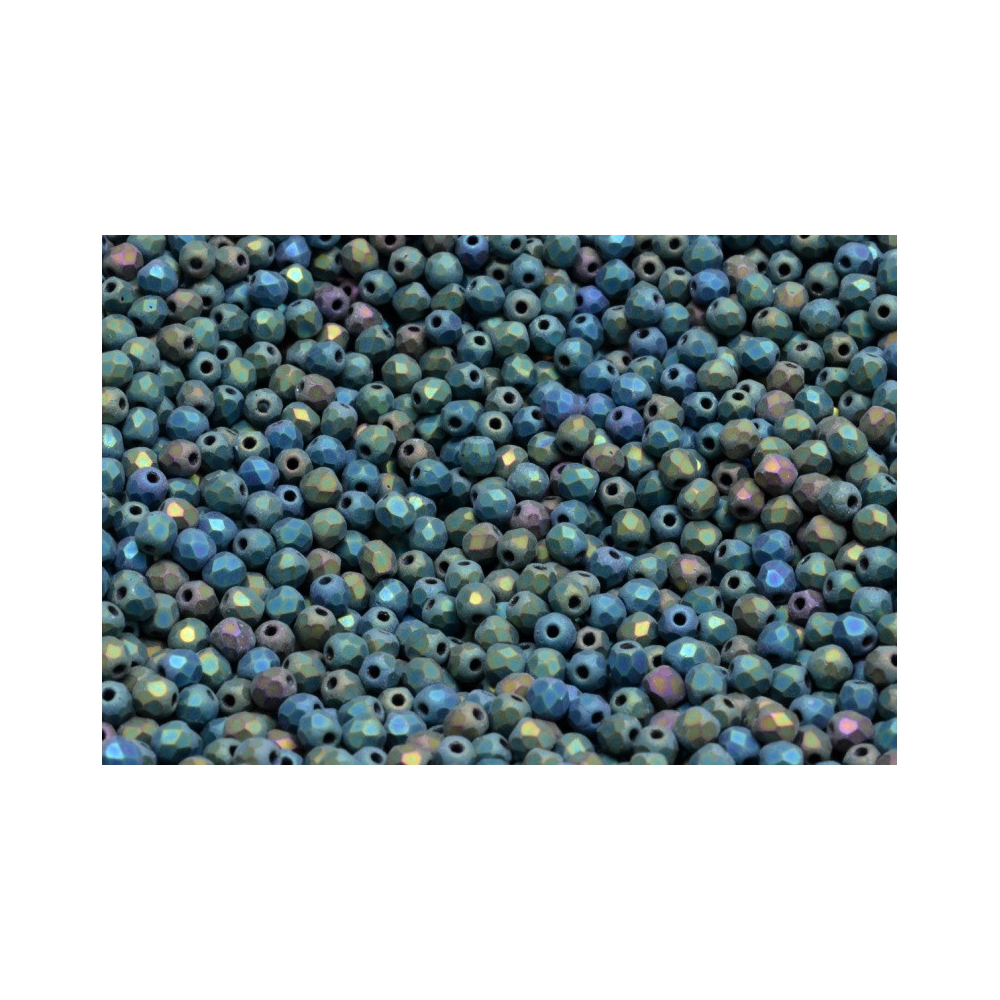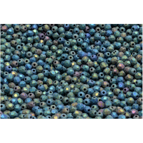 Broušené korálky - ohňovky 3 mm JET GREEN IRIS MAT 23980/84100/21455