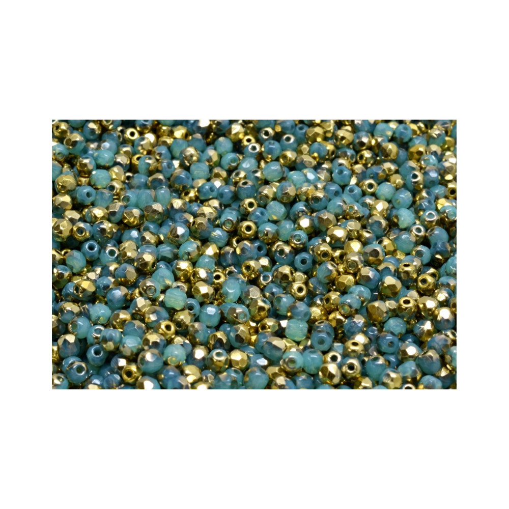 Tyrkysový základ s luxusním zlatým odleskem definuje tento typ fasetovaných korálků, které jsou v bižuterii nezaměnitelné pro svůj vysoký lesk. Tyto české skleněné korálky procházejí procesem tepelného leštění, což jim dodává hladké hrany a intenzivní hru světla, kterou u běžných lisovaných korálků nenajdete. Na rozdíl od strojově broušených krystalů s ostrými hranami působí tato technika jemněji a přirozeněji.