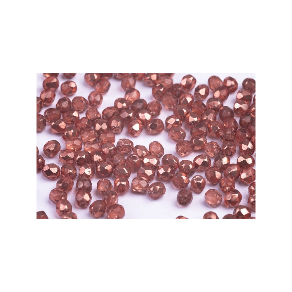 Měděné odlesky a hřejivý základ definují tyto tradiční české ohňovky, které představují vrchol sklářského umění z Jablonecka. Broušené korálky o velikosti 4 mm se vyrábějí precizním mechanickým fasetováním skleněných polotovarů, které následně procházejí procesem leštění v ohni pro dosažení dokonalého lesku. Tato technologie fire-polishing dodává každému kusu nezaměnitelnou jiskru a jemně zaoblené hrany, které jsou šetrné k návlekovému materiálu.