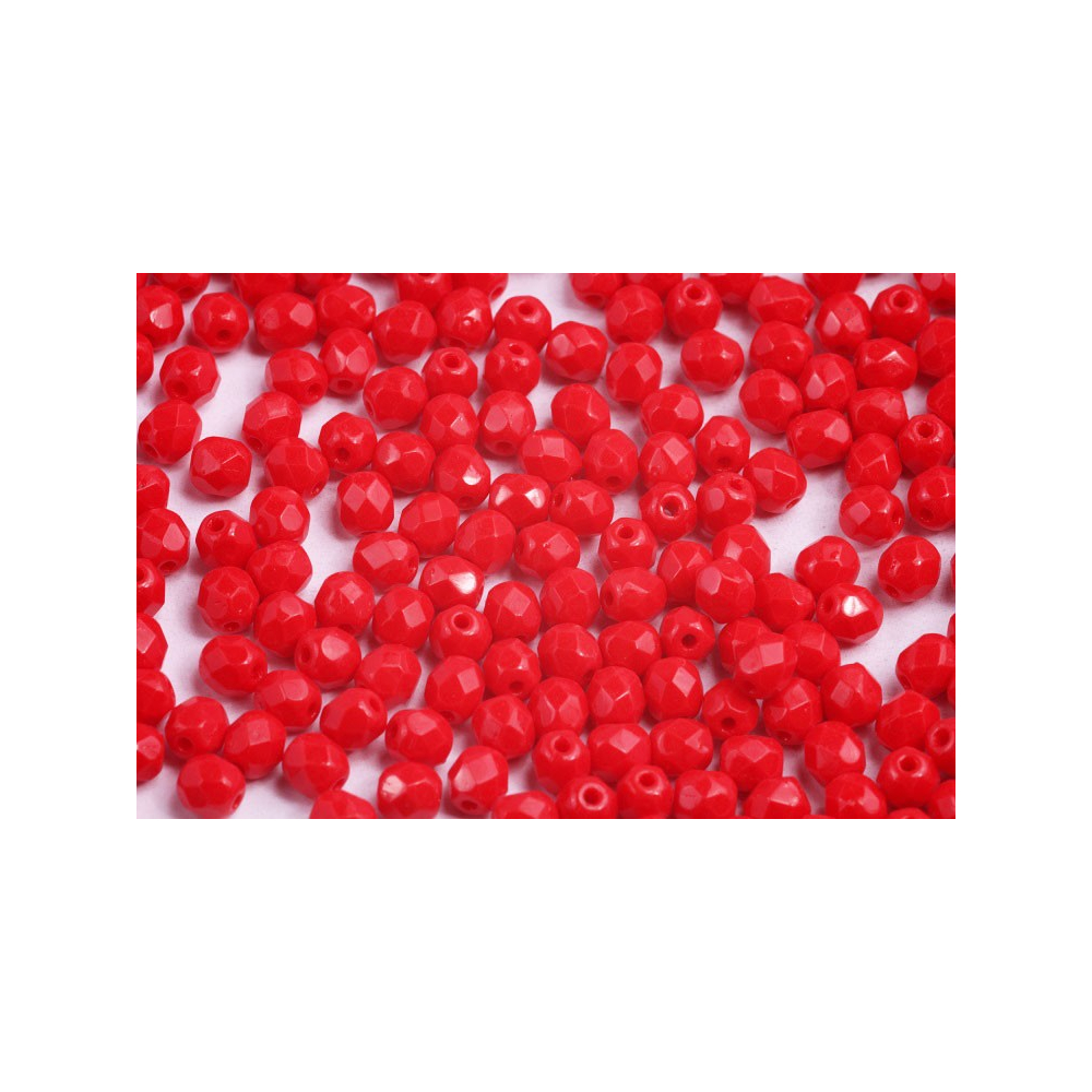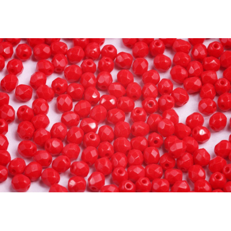 Ohňovky - broušené korálky 4 mm OPAQUE CORAL RED 93200