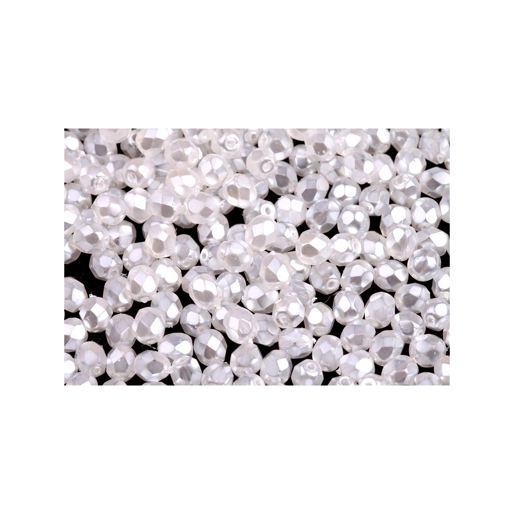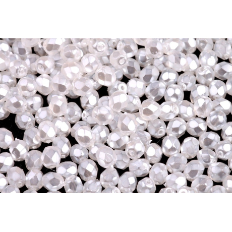 Ohňovky - broušené korálky 4 mm COATED - WHITE PEARL 00030/70402