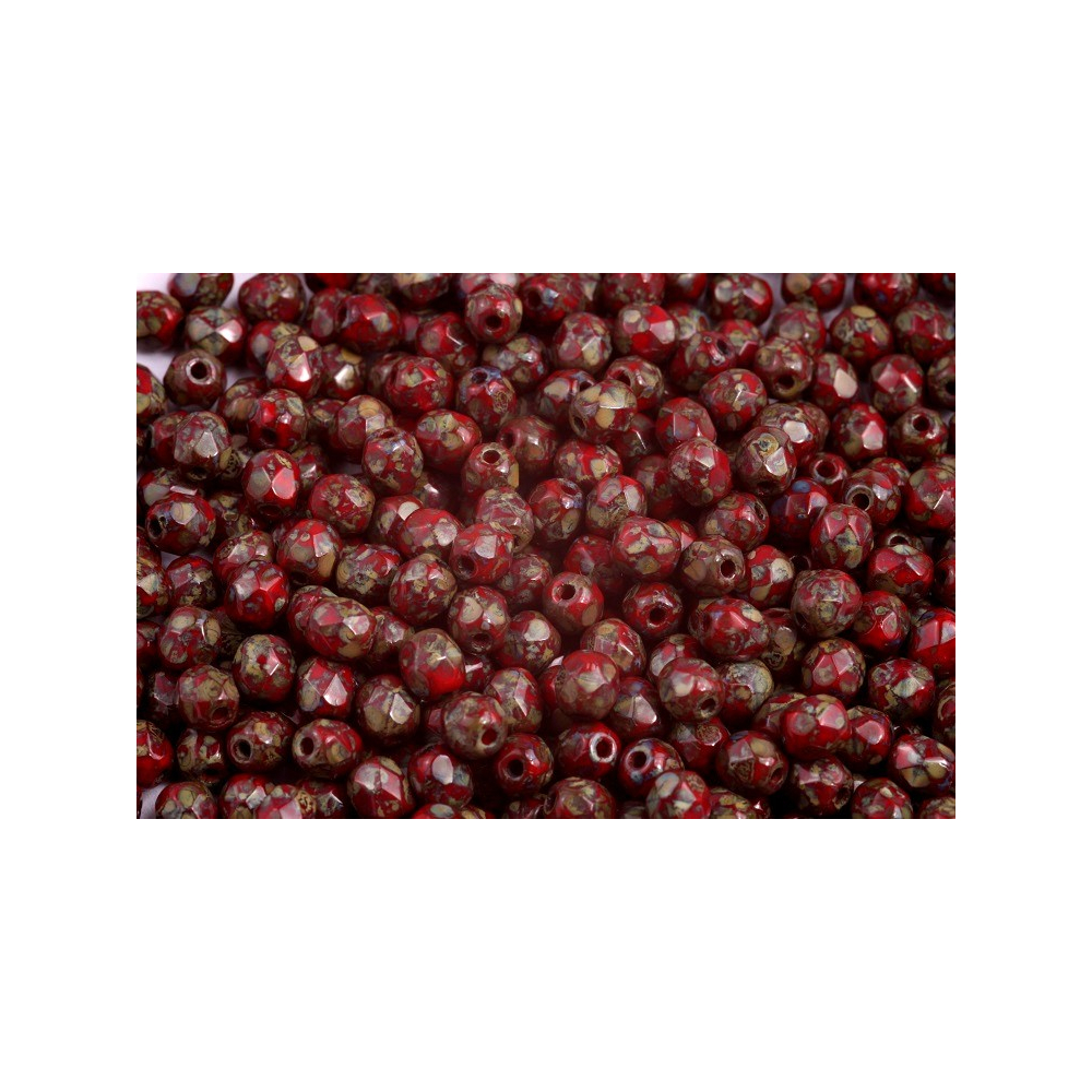 Ohňovky - broušené korálky 4 mm OPAQUE CORAL RED TRAVERTIN DARK 93200/86805