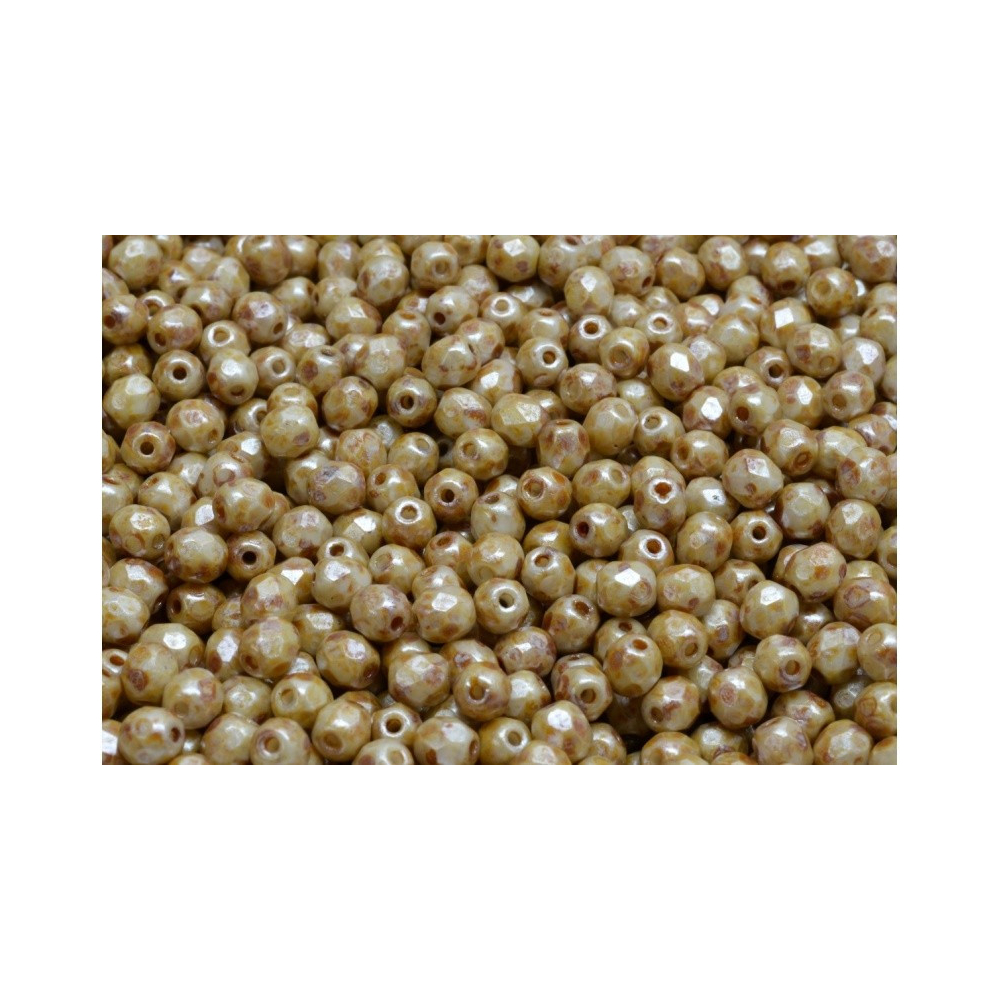 Ohňovky - broušené korálky 4 mm OPAQUE IVORY SPOTTED 02010/65321