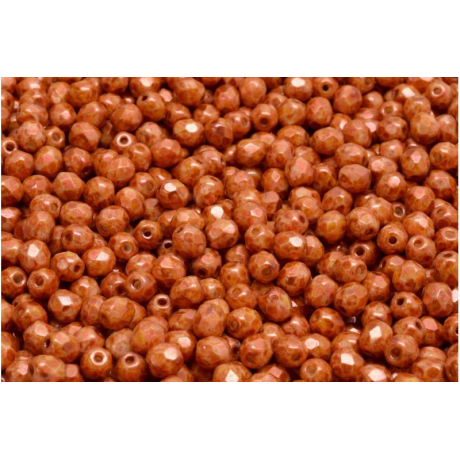 Ohňovky - broušené korálky 4 mm OPAQUE SALMON SPOTTED 02010/65324