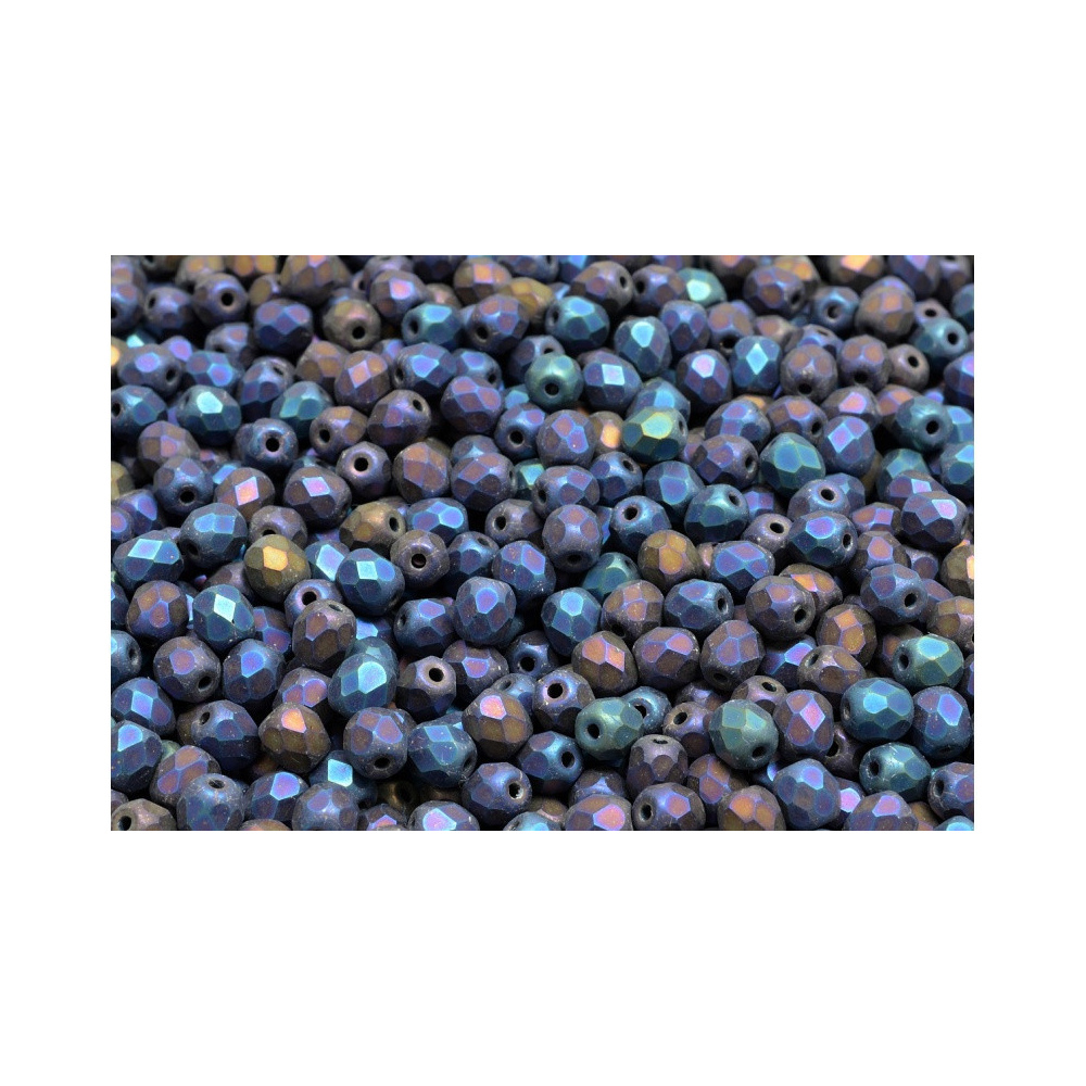 Matný iris povrch těchto korálků vytváří unikátní metalické odlesky v odstínech modré a fialové, které u běžných lesklých variant nenajdete. Broušené korálky, známé také jako ohňovky (Fire Polished Beads 4mm), procházejí procesem tepelného leštění, který zjemňuje hrany výbrusu a dodává sklu vnitřní záři. Na rozdíl od krystalů s ostrými hranami působí tyto korálky od výrobce Rutkovsky organičtějším dojmem, což z nich činí ideální volbu pro vintage designy i moderní šitý šperk.