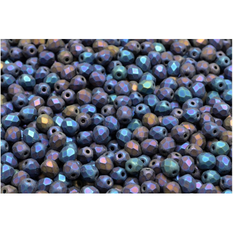 Ohňovky - broušené korálky 4 mm JET WHITE IRIS MAT 23980/84100/21405