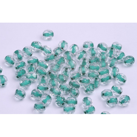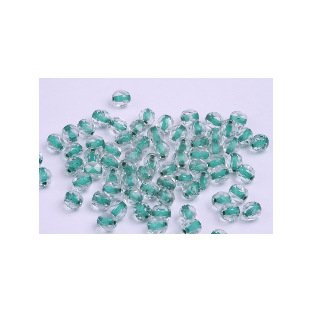 Zelený střed prosvítající skrze čiré křišťálové fasetování dodává těmto broušeným korálkům typu ohňovky hloubku a dynamiku. Fire Polished Beads od prestižního českého výrobce Rutkovsky o velikosti 6 mm představují špičku v tradičním sklářském řemesle, kde se snoubí strojový brus s následným tepelným leštěním pro dosažení vysokého lesku a jemných hran.