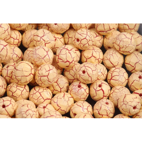 Sytá kombinace krémově žlutého podkladu a temně červených faset vytváří z těchto korálků nepřehlédnutelný prvek pro každou kreativní tvorbu. Ohňovky / Broušené korálky o velikosti 8 mm vynikají svou specifickou texturou, která připomíná vzácné minerály nebo mramorování, čímž dodávají výslednému dílu nádech luxusu a přírodní estetiky.