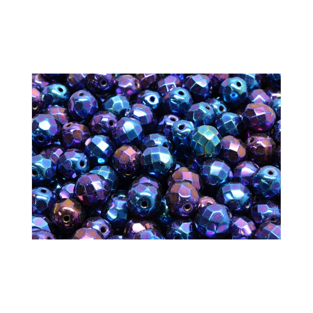 Ohňovky - broušené korálky 8 mm JET BLUE IRIS 23980/21435