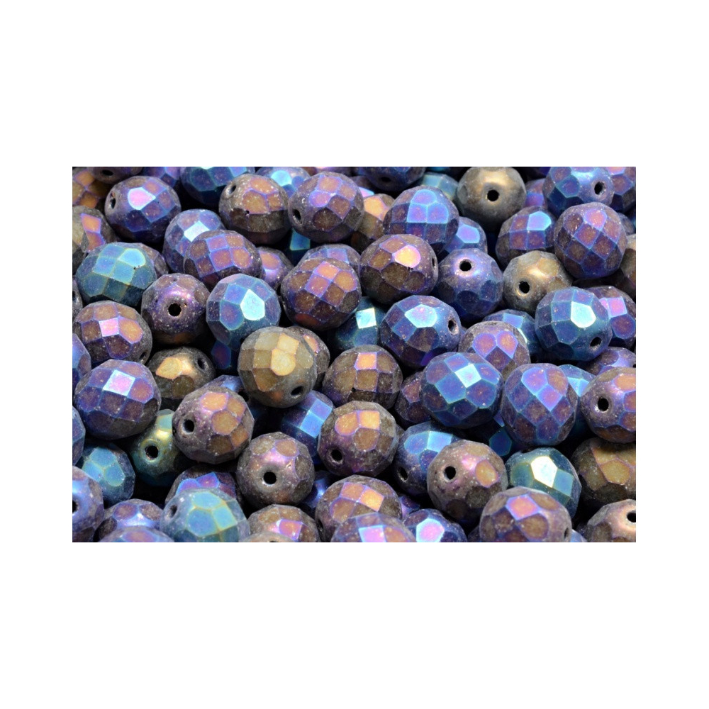 Ohňovky - broušené korálky 8 mm JET BLUE IRIS MAT 23980/84100/21435