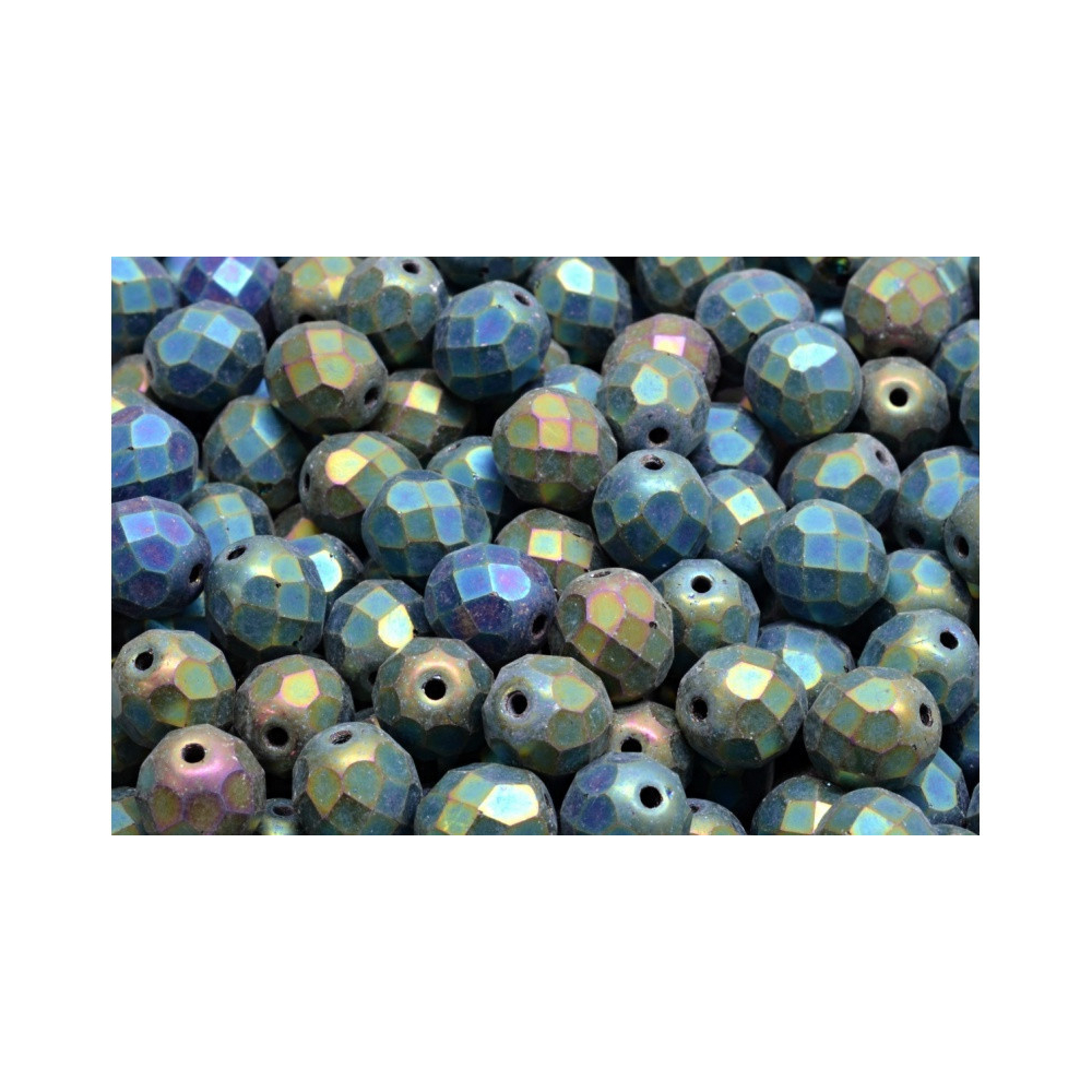 Ohňovky - broušené korálky 8 mm JET GREEN IRIS MAT 23980/84100/21455