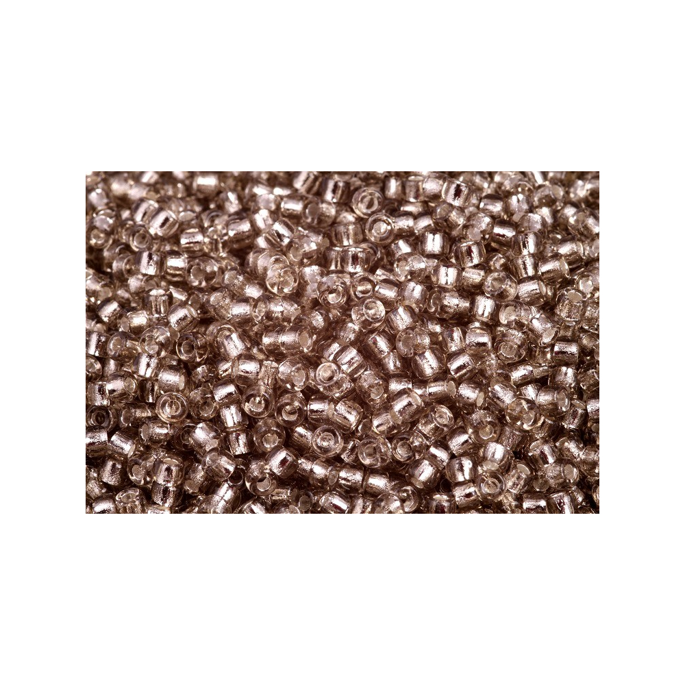 TOHO Round 29BF Velikost: 3,1 mm - 8/0 Velikost průtahu: 0,9 mm Balení: 10 g Barva: Silver-Lined...