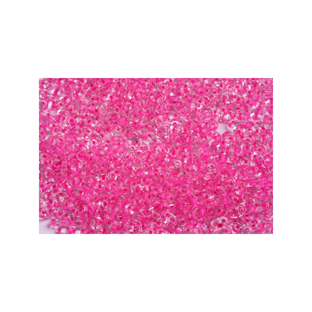 Krystalově čiré sklo s vnitřním růžovým průtahem definuje tyto precizní Matubo™ MiniDuo korálky o rozměru 2x4 mm. Díky technologii lisování mají korálky naprosto konzistentní tvar a přesně umístěné dva otvory o průměru 0,8 mm, což zajišťuje hladký vícenásobný průchod nití korálkem i při složitých vzorech. Tato drobnější varianta oblíbeného tvaru je vyrobena z prvotřídní skloviny a představuje nezbytný základ pro každou detailní korálkovou práci, kde záleží na každém milimetru a vysoké geometrické přesnosti.