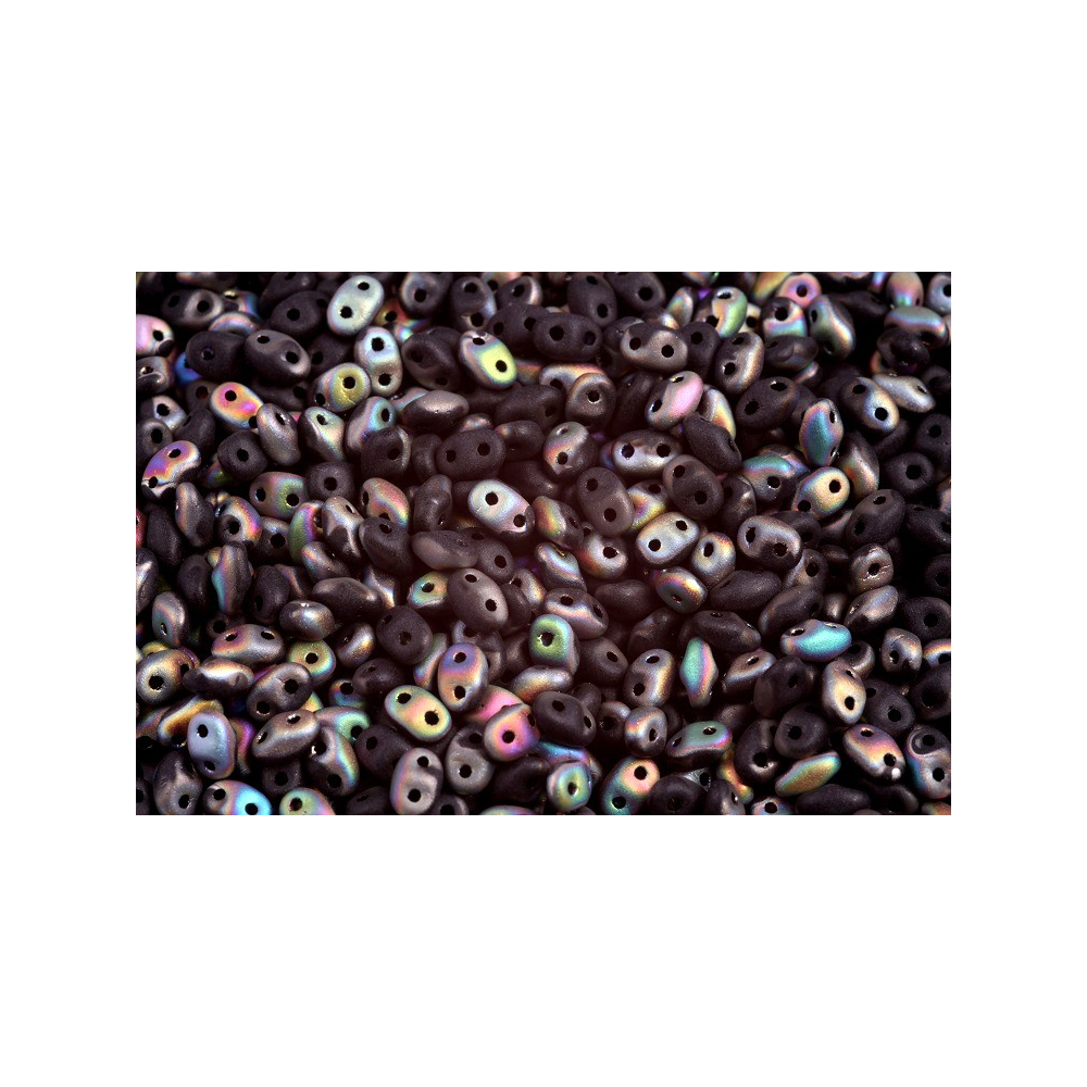 Matná černá povrchová úprava Jet Vitrail Mat dodává těmto korálkům o rozměru 2x4 mm tajemný a luxusní nádech s jemnými kovovými odlesky v duhových tónech. Tyto korálky Matubo™ MiniDuo jsou vyráběny z prvotřídní skloviny Preciosa Ornela, což zaručuje jejich tvarovou stálost a hladký povrch otvorů. Díky své subtilní velikosti se skvěle kombinují s většími korálky Matubo SuperDuo, kdy menší varianty vyplňují mezery a umožňují jemnější gradaci vzoru v pokročilých designech.