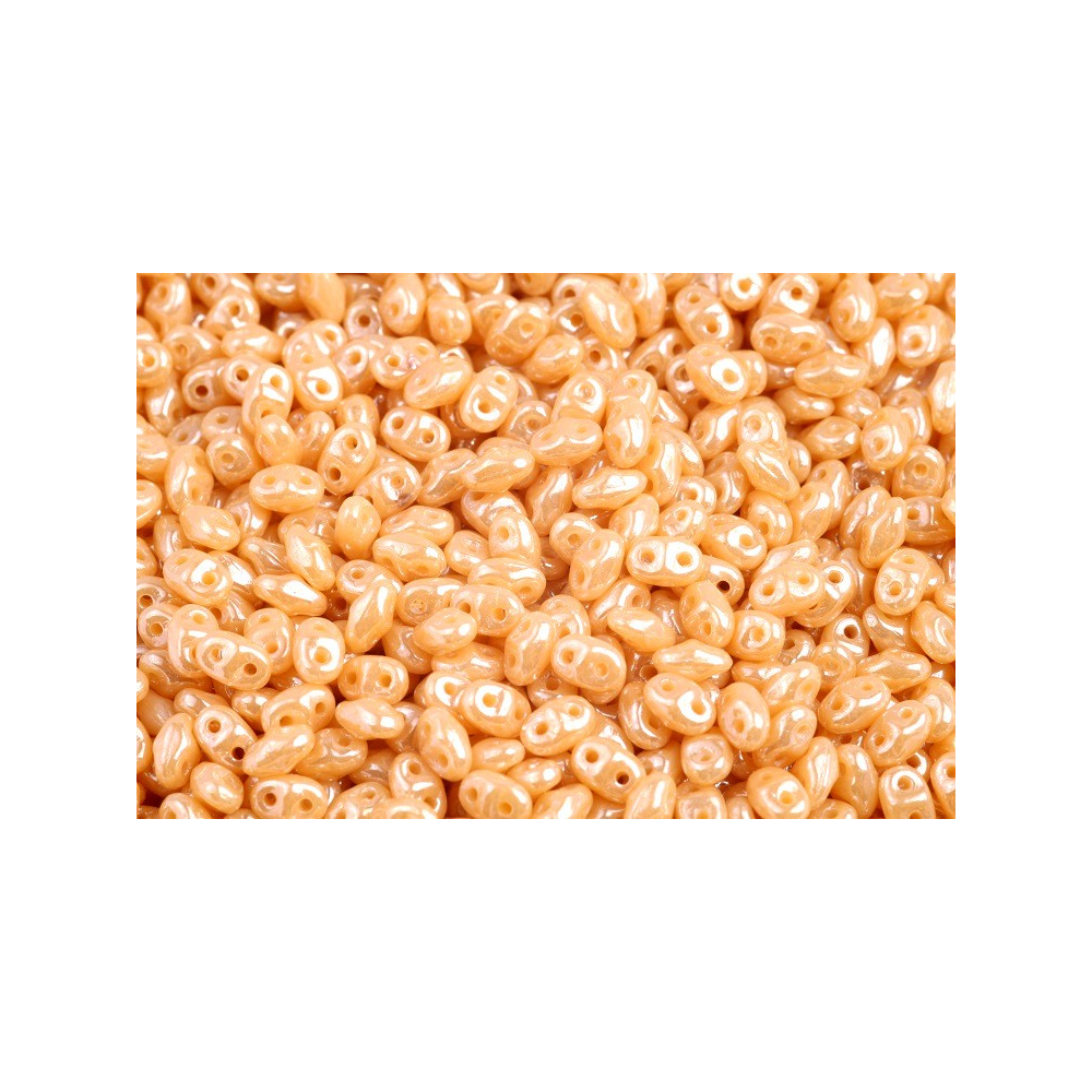 Béžová varianta s perleťovým leskem dodává šperkům jemný, luxusní nádech, který vynikne zejména v kombinaci s materiály jako rokajl Preciosa, jenž slouží jako ideální výplň v propracovaných vzorech. Matubo™ MiniDuo o rozměru 2x4 mm disponuje dvěma otvory s hladkým průtahem 0,8 mm, což umožňuje vytvářet komplexní prostorové struktury bez rizika praskání nitě. Pro dosažení nejlepších výsledků doporučujeme používat korálkovací jehly velikosti 10-12 a pevné nitě jako S-lon.