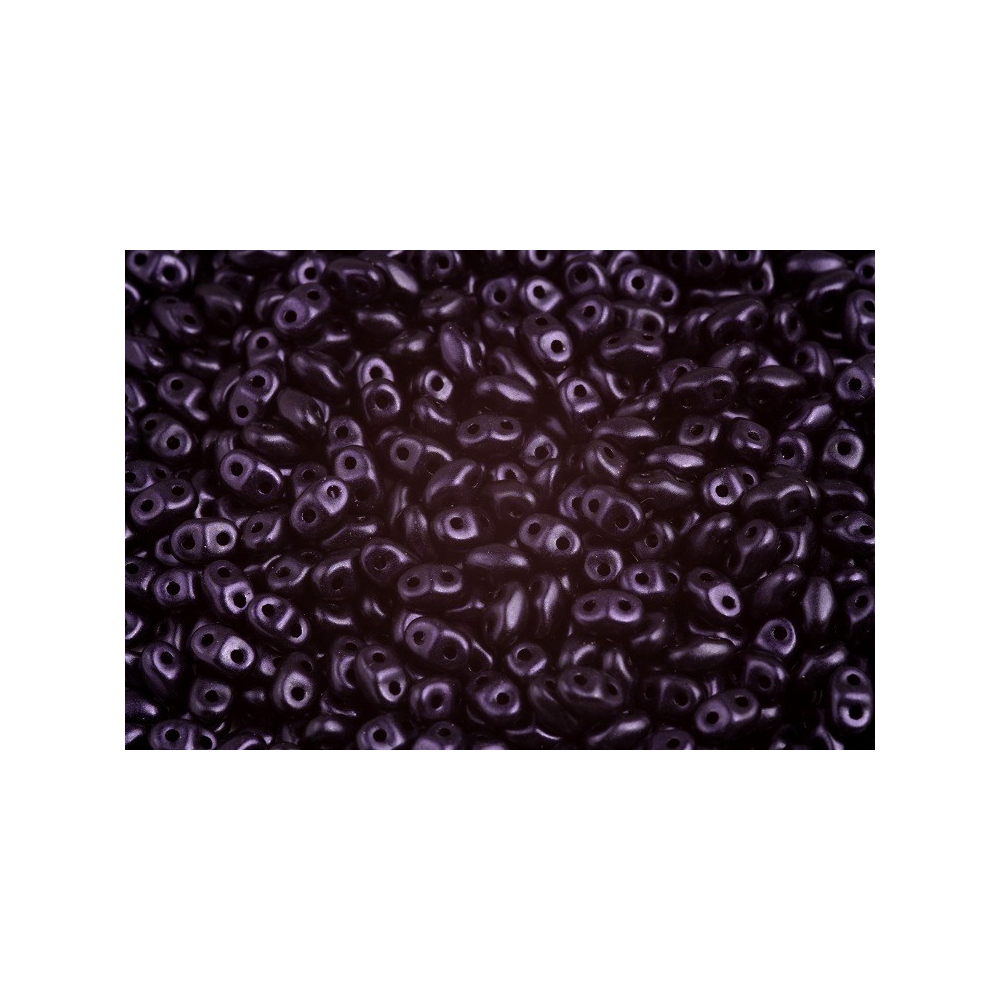 METALLIC SUEDE DARK PURPLE v provedení Matubo™ MiniDuo s rozměry 2x4 mm představuje špičkový dvoudírkový komponent z českého skla, který se vyznačuje mimořádnou tvarovou stabilitou a precizním zpracováním. Tyto korálky mají otvory o průměru 0,8 mm s dokonale hladkým vnitřním povrchem, což zajišťuje bezproblémový vícenásobný průchod nití korálkem bez rizika poškození návlekového materiálu. Díky své drobné velikosti jsou ideální pro detailní práce, kde by standardní dvoudírkové korálky působily příliš robustně a vyžadovaly by více prostoru.