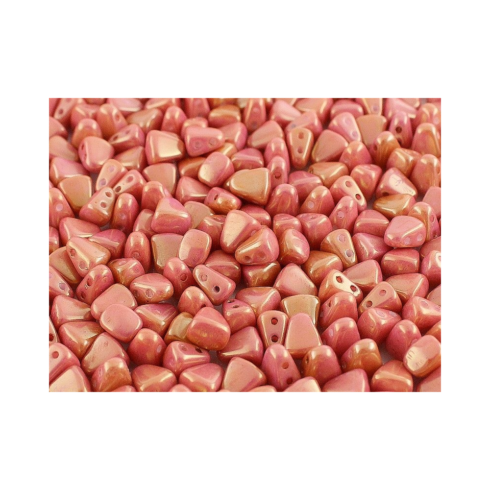 Matubo™ Nib-Bit v jemném odstínu Chalk Red Luster s kódem barvy 03000/14495 přináší do světa bižuterie unikátní tvar inspirovaný geometrií. S rozměrem 6x5 mm a dvěma precizně umístěnými otvory o průměru 0,8 mm umožňují tyto korálky Matubo ze skloviny Preciosa Ornela vytvářet stabilní a esteticky dokonalé prostorové vzory.