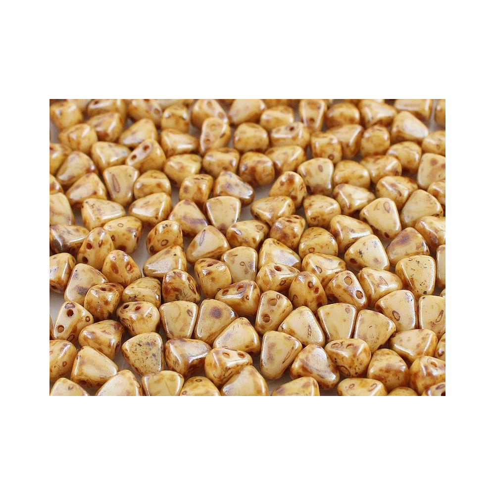 Pískově oranžové tóny v kombinaci s rustikální povrchovou úpravou představují ideální volbu pro šperkařské projekty inspirované přírodou a minimalismem. Tyto dvoudírkové korálky Matubo™ Nib-Bit o rozměru 6x5 mm nabízejí díky svému unikátnímu klínovitému tvaru nekonečné možnosti při tvorbě prostorových vzorů a kruhových motivů. Výborně se doplňují s dalšími tvary, jako jsou legendární Matubo SuperDuo, se kterými tvoří dokonale lícující mozaiky v komplexních schématech šitých šperků.