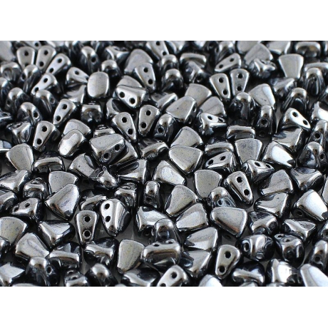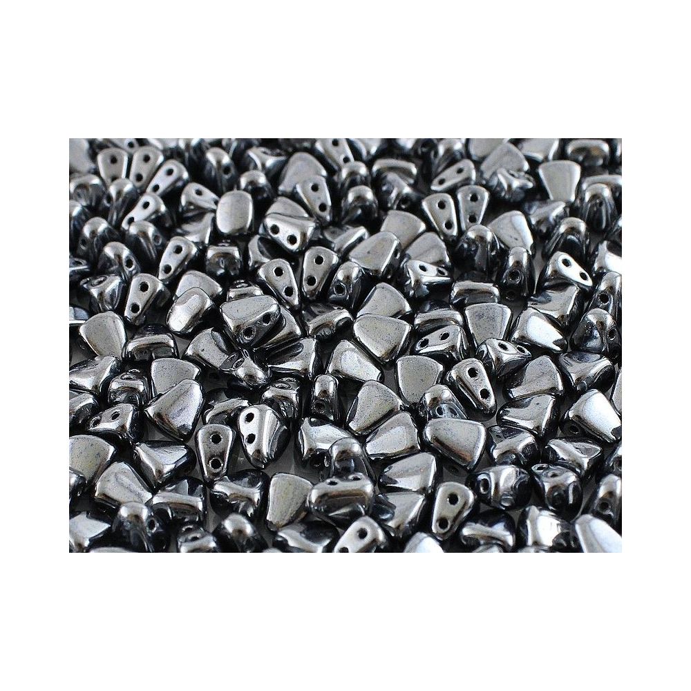Hematitový kovový lesk a unikátní klínovitý tvar definují tyto precizní dvoudírkové korálky Matubo™ Nib-Bit o rozměru 6x5 mm. Díky dvěma rovnoběžným otvorům s konstantním průtahem 0,8 mm umožňují tyto korálky vícenásobný průchod nití korálkem, což je zásadní pro stabilitu prostorových konstrukcí. Při práci s těmito díly oceníte dokonale hladké hrany, které chrání navlékací materiál před oděrem, a precizní geometrii, jež zaručuje, že korálky do sebe v rámci vzoru přesně zapadají. V jednom balení najdete přibližně 30 kusů korálků, což představuje ideální množství pro menší projekt nebo jako doplňkový akcent.