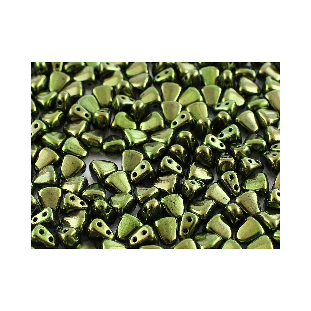 Smaragdově zelené odlesky s kovovým nádechem dodávají korálkům Matubo™ Nib-Bit hloubku, která vynikne v každém autorském projektu. Tyto dvoudírkové korálky o rozměru 6x5 mm jsou vyrobeny z kvalitní skloviny Preciosa Ornela a díky svému unikátnímu tvaru připomínajícímu zaoblený klín umožňují vytvářet plynulé křivky a kruhové motivy. České skleněné korálky značky Matubo jsou celosvětově uznávané pro svou přesnost a stálost povrchové úpravy, což z nich činí ideální volbu pro profesionální šperkaře i nadšené začátečníky.