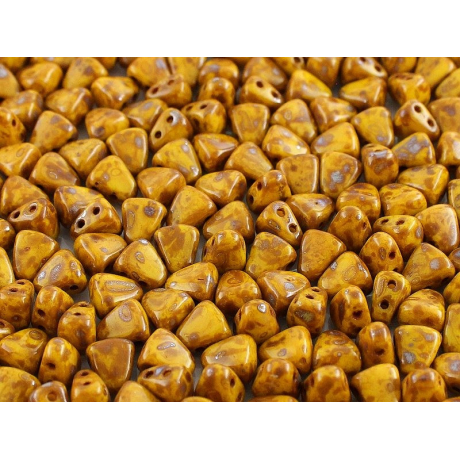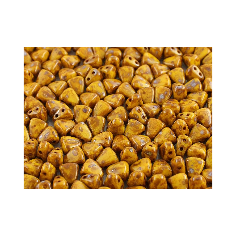 Žlutohnědé dvoudírkové korálky Matubo™ Nib-Bit v unikátním odstínu Limon Picasso (kód 83120/43400) představují precizní komponent o rozměru 6x5 mm. Tyto korálky jsou lisovány z kvalitní skloviny Preciosa Ornela a vynikají dokonalou symetrií a hladkým průtahem o velikosti 0,8 mm, který umožňuje vícenásobný průchod nití korálkem bez rizika prasknutí. Díky své specifické geometrii do sebe jednotlivé kusy perfektně zapadají, což oceníte zejména při tvorbě prostorových objektů nebo lemování kabošonů. Balení obsahuje přibližně 30 kusů, přičemž finální počet je orientační a závisí na konkrétní hmotnosti dané šarže.
