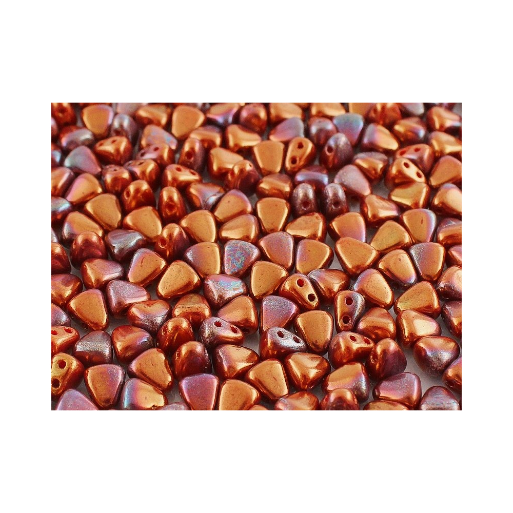 Korálově červená s uhrančivým efektem Vega Iris tvoří základ těchto korálků Matubo™ Nib-Bit, které přinášejí do světa šitých šperků zcela novou geometrickou dimenzi. Jejich unikátní klínovitý tvar o rozměrech 6x5 mm se dvěma rovnoběžnými otvory je navržen pro dokonalé seskládání do kruhových a organických tvarů, přičemž v kombinaci s Matubo SuperDuo v komplexních vzorech vytvářejí fascinující 3D reliéfy a bohaté textury. Díky preciznímu zpracování v českých hutích je zaručena tvarová stálost, která je klíčová pro náročné techniky beadweavingu.
