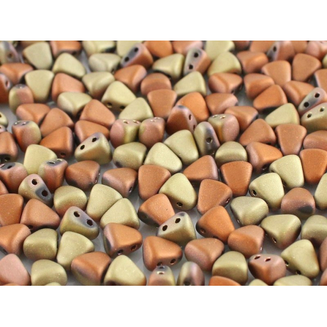 Matný metalický povrch s jemnými zlatavými a bronzovými odlesky dodává šperkům nádech luxusu a nadčasové vintage elegance. Díky specifickému klínovitému tvaru o velikosti 6x5 mm do sebe korálky v ploše perfektně zapadají, což umožňuje snadné vytváření kruhových mandal, vlnovek nebo prostorových 3D tvarů. Přesný průtah 0,8 mm je ideální pro náročné techniky šitého šperku, kde je vyžadována vysoká přesnost lícování.