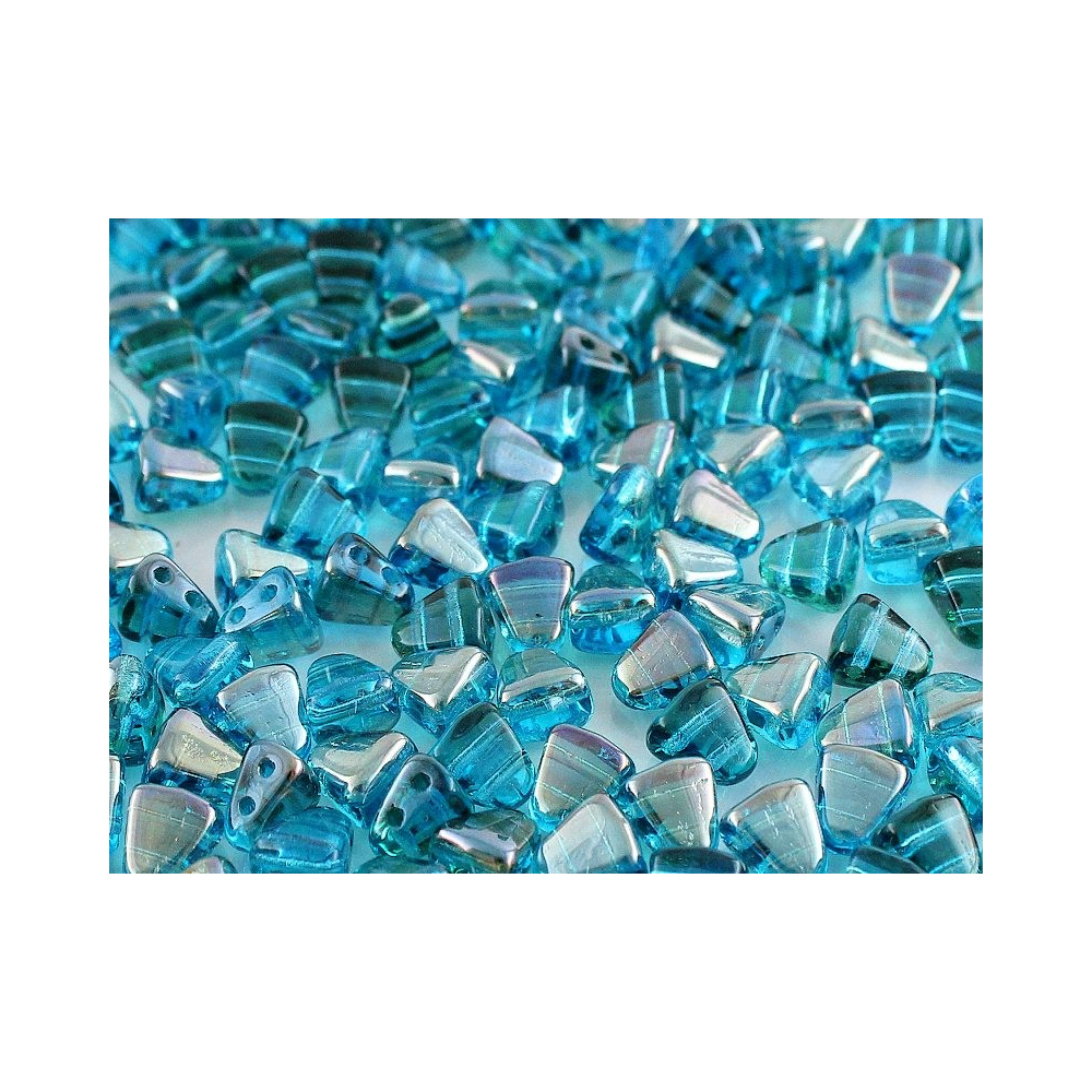Akvamarínový odstín v úpravě Clarit definuje tyto precizní dvoudírkové korálky Matubo™ Nib-Bit o rozměru 6x5 mm. Jsou vyrobeny z prvotřídní české skloviny Preciosa Ornela, která zaručuje barevnou stálost a vysoký lesk transparentního povrchu. Průměr obou otvorů činí 0,8 mm, což umožňuje vícenásobný průchod nití korálkem při složitějších technikách bead weavingu. Díky svému unikátnímu klínovitému tvaru tyto korálky Matubo™ Nib-Bit perfektně pasují k dalším doplňkům, jako je oblíbený Matubo SuperDuo, se kterým vytvářejí komplexní a strukturálně pevné vzory.