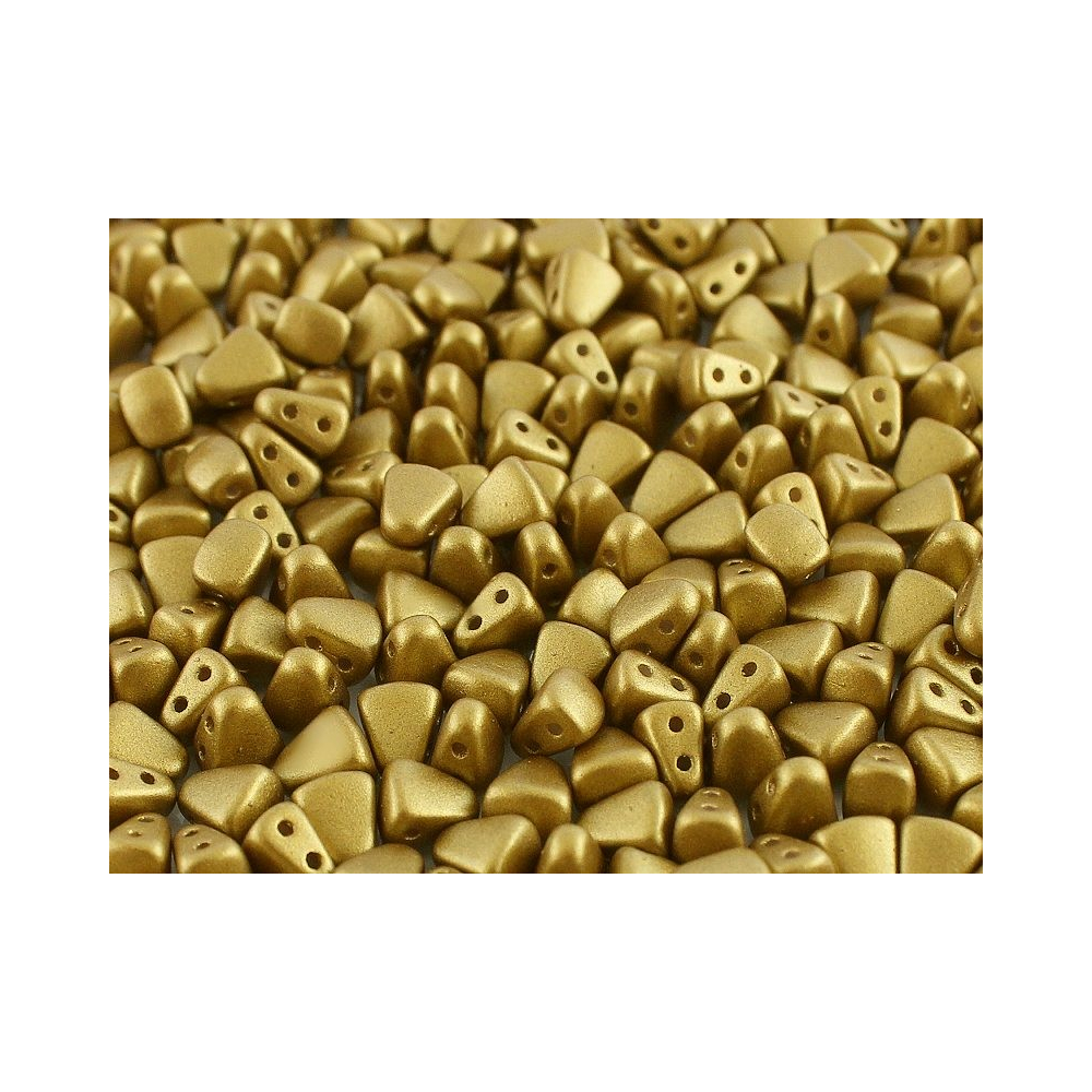 Bronzová a zlatá barva s jemným kovovým nádechem představují naprostý základ pro tvorbu luxusních šperků, které nepodléhají času. Matubo™ Nib-Bit v odstínu Crystal Bronze Olive Gold jsou špičkové české skleněné korálky, které svým klínovitým tvarem otevírají dveře k nekonečným možnostem v geometrickém designu. Díky preciznímu zpracování firmy Matubo se tyto dvoudírkové korálky skvěle kombinují s dalšími tvary, jako je například Matubo SuperDuo, se kterým snadno vytvoříte dokonale symetrické kruhové motivy nebo mandaly.