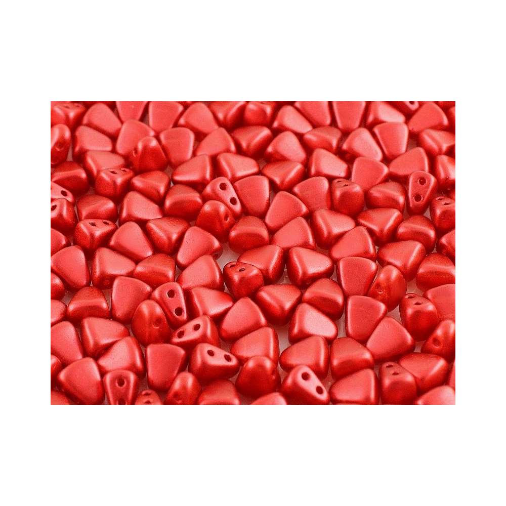 Povrchová úprava Lava Red dodává skleněnému základu sytě červený, saténově kovový lesk, který vynikne v kombinaci s neutrálními bronzovými akcenty nebo kontrastním černým jetem. Tyto české skleněné korálky se skvěle doplňují s dalšími tvary od stejného výrobce, kdy například Matubo SuperDuo a Nib-Bit tvoří v komplexních dvoudírkových vzorech dokonalou geometrickou symetrii. Balení obsahuje přibližně 30 kusů, přičemž počet je orientační a závisí na konkrétní šarži, zatímco rozhodujícím faktorem zůstává hmotnost.