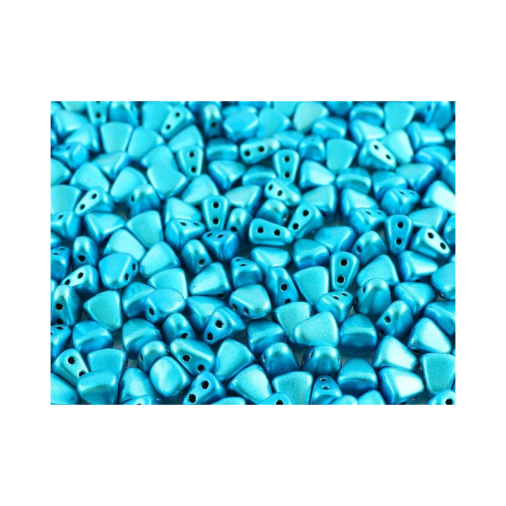 Tyrkysové odlesky hladiny moře připomíná povrchová úprava Metalust, kterou se pyšní tyto dvoudírkové korálky. Představte si šperk, ve kterém se snoubí geometrická přesnost s hravostí světla odrážejícího se od metalického povrchu. Matubo™ Nib-Bit v odstínu METALUST TURQUOISE jsou díky svému klínovitému tvaru o rozměru 6x5 mm nepostradatelným prvkem pro každého designéra, který hledá neotřelé tvary pro své projekty. Pro výrazný kontrast zkombinujte s korálovou nebo broskvovou barvou, čímž podtrhnete exotický nádech výsledného šperku.