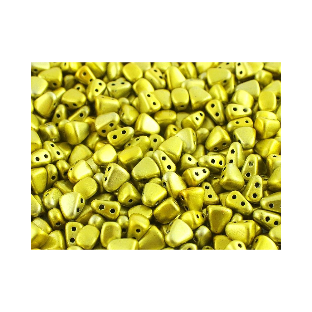 Zářivý kovový odlesk v odstínu metalické zlaté (kód 23980/24208) definuje tyto Matubo™ Nib-Bit jako ideální materiál pro tvorbu luxusních šperků s vysokým leskem. Unikátní klínovitý tvar s dvěma dírkami umožňuje vytvářet plynulé křivky a geometrické obrazce, které jsou v současném designu velmi žádané.