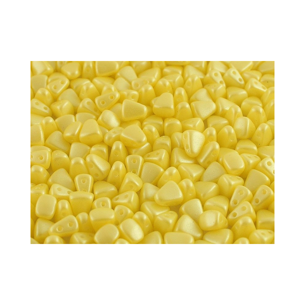 Barevná paleta tohoto materiálu nabízí široké možnosti párování – pro harmonický vzhled doporučujeme kombinaci se žlutým topazem, zatímco výrazného kontrastu dosáhnete s kobaltově modrou nebo bronzovými akcenty. Matubo™ Nib-Bit jsou vyrobeny z prvotřídní české skloviny Preciosa Ornela, která zajišťuje vysokou kvalitu a stálost povrchové úpravy u každého kusu o rozměru 6x5 mm. Jako ideální spojovací výplň v Nib-Bit vzorech poslouží drobný rokajl Preciosa, který podtrhne geometrickou čistotu vašeho autorského návrhu.