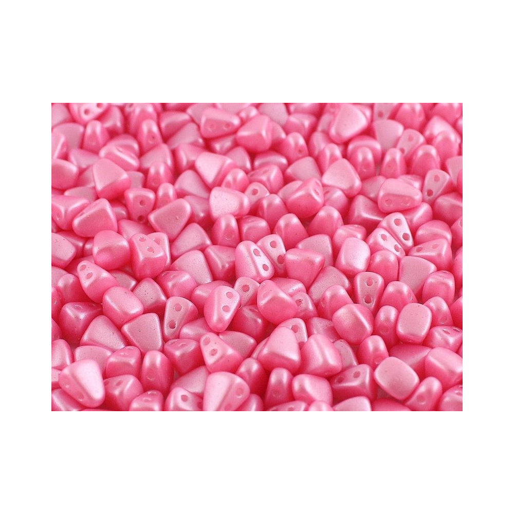 Růžová perleťová barva v kombinaci s unikátním trojúhelníkovým tvarem otevírá nové možnosti v moderním designu šperků, kde hraje prim geometrie a preciznost. Tyto dvoudírkové korálky Matubo™ Nib-Bit jsou vyrobeny z kvalitní české skloviny Preciosa Ornela a díky svému specifickému zkosení do sebe v kruhových vzorech dokonale zapadají. Při tvorbě náročných náhrdelníků nebo prostorových objektů je můžete skvěle kombinovat s materiálem Matubo SuperDuo, čímž dosáhnete profesionální pevnosti a stability celého designu.