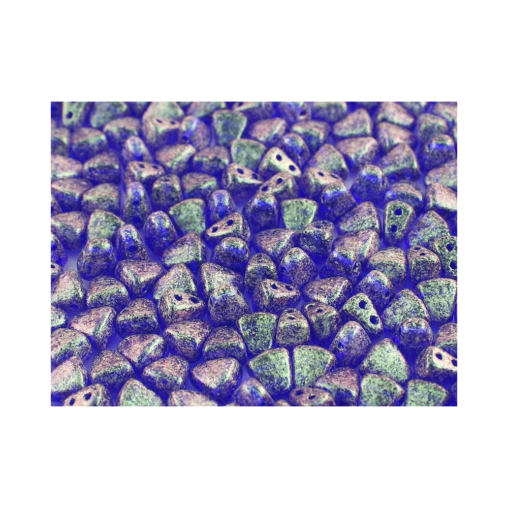 Stardust Cobalt Blue s unikátní metalickou texturou představuje ideální volbu pro designéry, kteří hledají hloubku a kosmický třpyt ve svých návrzích. Tyto precizně tvarované Matubo™ Nib-Bit o rozměru 6x5 mm se vyznačují specifickým klínovitým tvarem, který do sebe v kruhových i lineárních vzorech dokonale zapadá. Povrchová úprava připomínající hvězdný prach na tmavě modrém podkladu dodá vašemu šitému šperku luxusní vzhled, který vynikne zejména při večerním osvětlení.