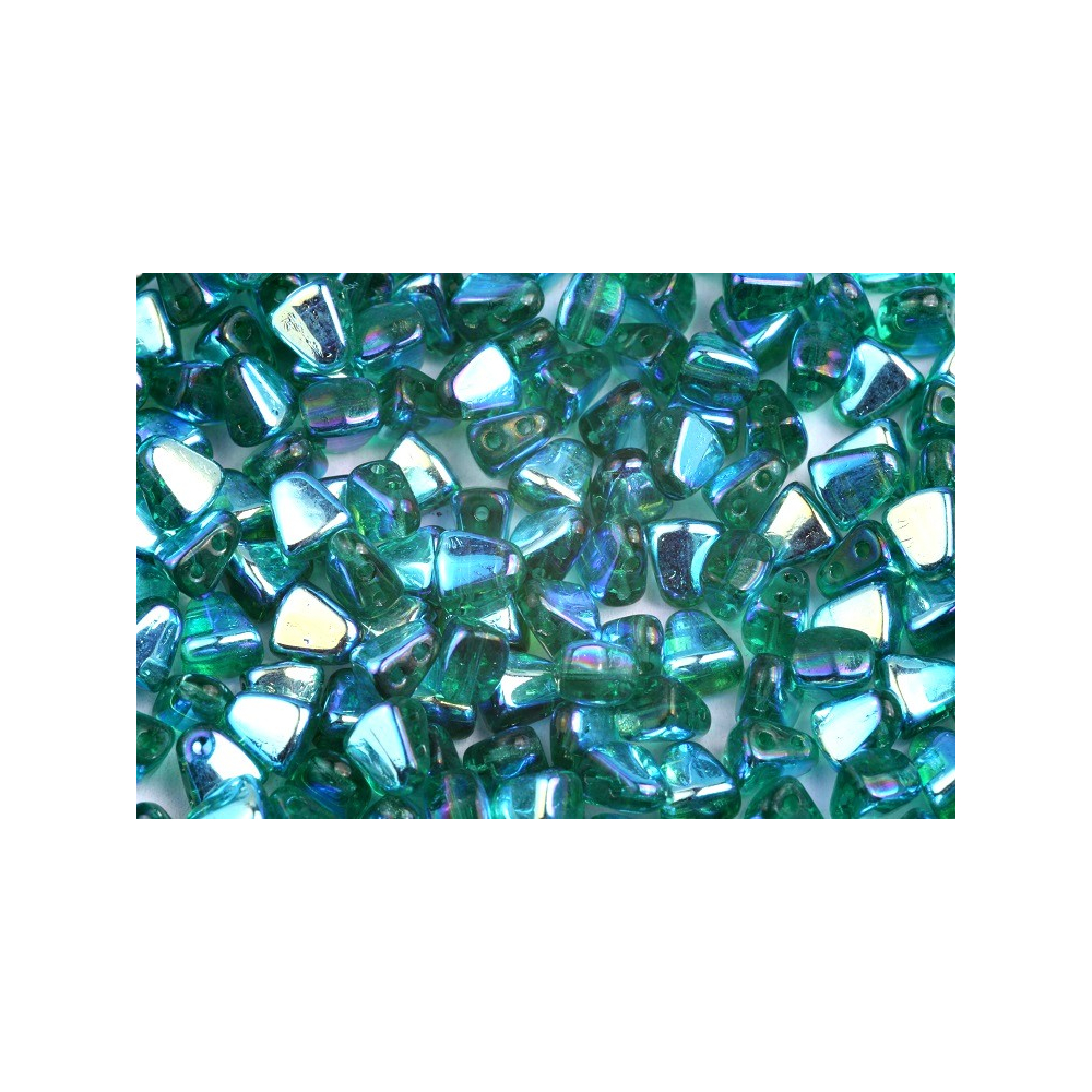 Smaragdově zelená barva s úpravou Emerald AB dodává těmto dvoudírkovým korálkům hloubku a magický lesk, který se mění s každým dopadem světla. Matubo™ Nib-Bit o rozměru 6x5 mm jsou vyrobeny z kvalitní skloviny Preciosa Ornela a vynikají svou tvarovou stálostí a dokonale hladkým povrchem. Díky unikátnímu klínovitému tvaru se skvěle doplňují s dalšími prvky, jako jsou například Matubo SuperDuo, což umožňuje vytvářet komplexní 3D vzory a mozaiky.