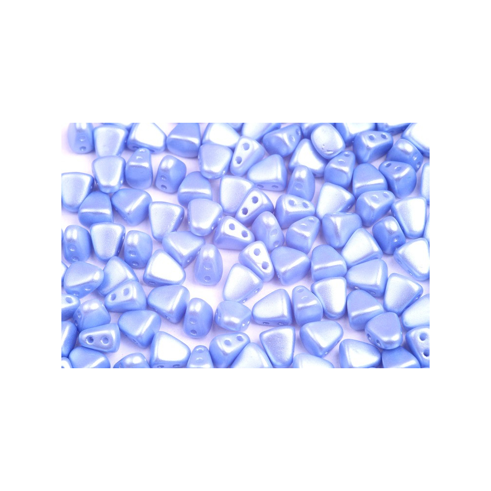 Světle modrá barva v jemném pastelovém tónu dominuje současným kolekcím minimalistických šperků a doplňků v romantickém stylu. Tyto dvoudírkové korálky Matubo™ Nib-Bit v odstínu Pastel Light Sapphire představují unikátní klínovitý tvar, který umožňuje vytvářet fascinující kruhové mandaly nebo vějířovité vzory. Díky preciznímu zpracování z českého skla Preciosa Ornela se tyto prvky skvěle doplňují s Matubo SuperDuo při tvorbě složitých prostorových textur, kde Nib-Bit slouží jako dokonalý konstrukční prvek.