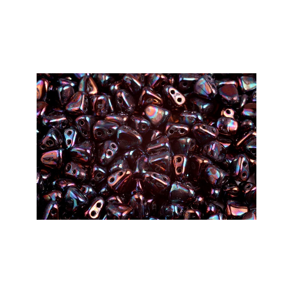 Matubo™ Nib-Bit v uhrančivém provedení Jet Iris Luster (kód 23980/15781) představují unikátní dvoudírkové korálky o rozměru 6x5 mm. Jejich specifický klínovitý tvar umožňuje umělcům vytvářet dokonalé kruhové motivy, rozety a mandaly, které v kombinaci s rokajlem Preciosa vytvoří pevnou a vizuálně bohatou strukturu. Barva Jet s kovově duhovým iris efektem dodává šperku hloubku a luxusní vzhled.